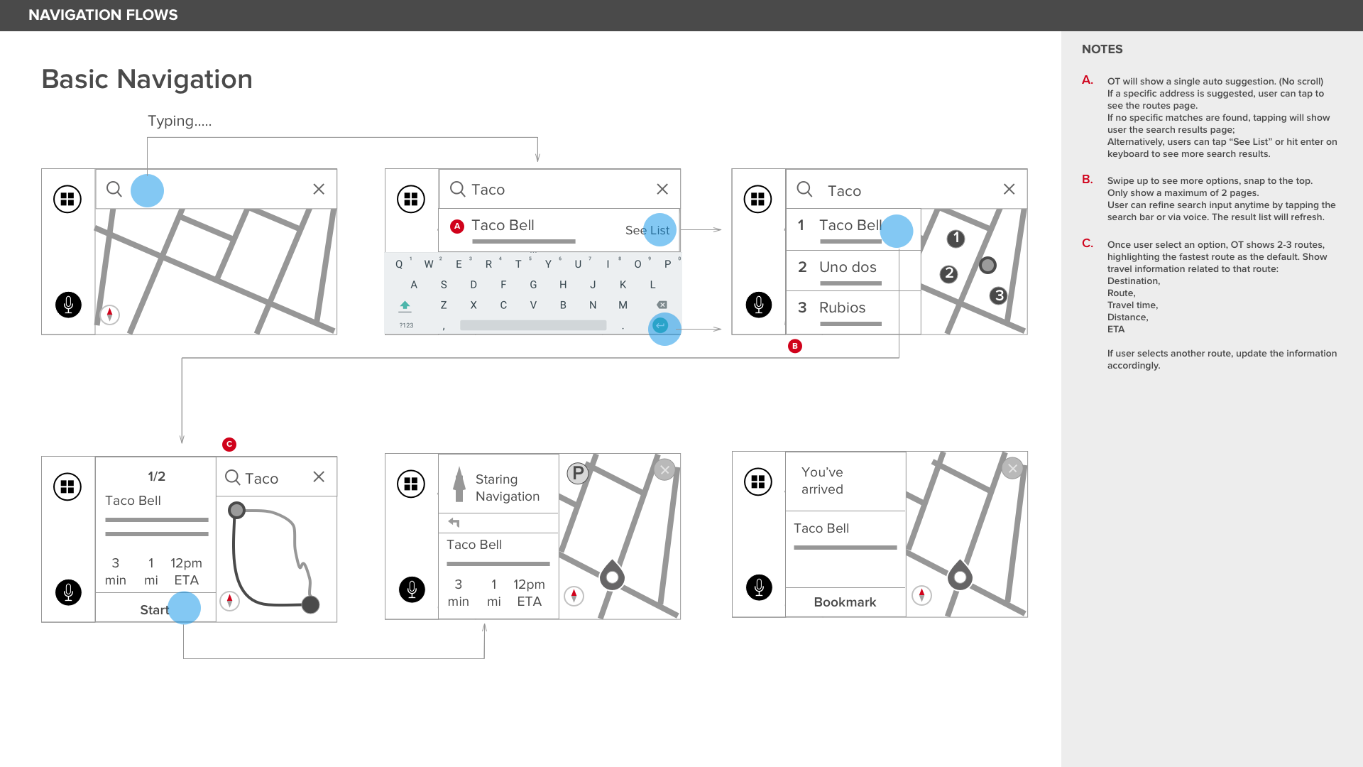 I led the team of designers to work with the TCL product team to set initial product and design strategy. We then used five day design sprints to design and build a voice controlled user interface for the driving experience. Our prototyping and user testing process ensured that the interface was easier and safer to navigate, even as we added additional features like parking assistance and music integration.